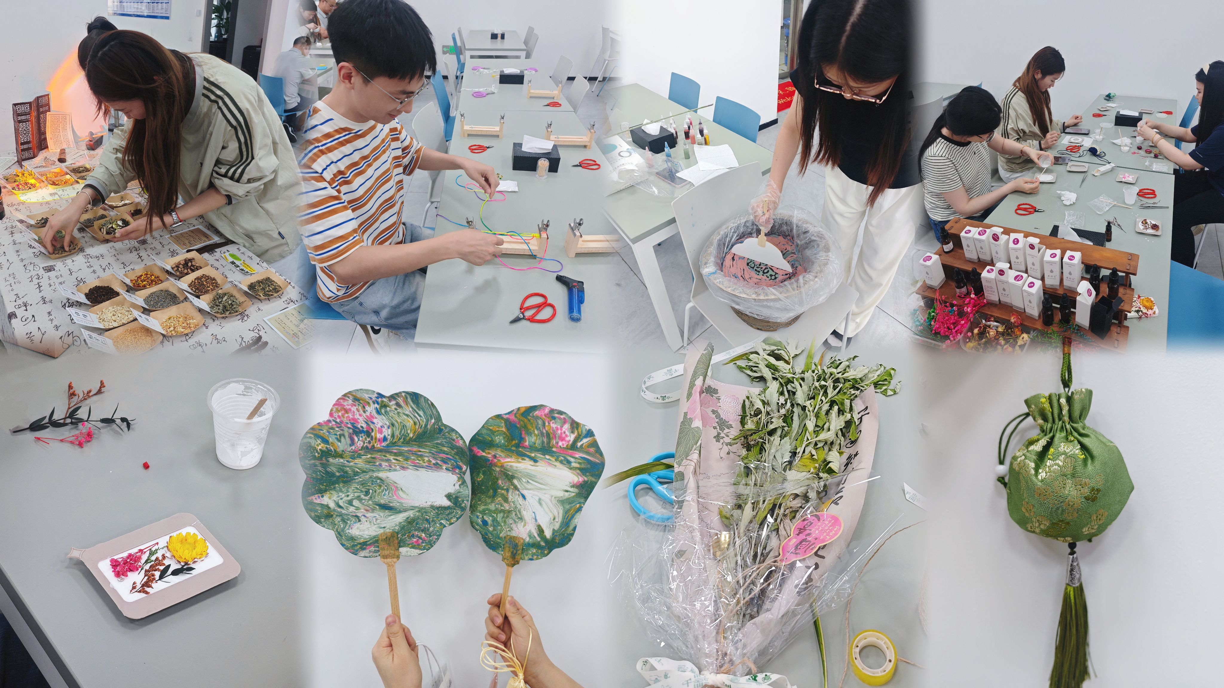 活動現場,五彩繩、香囊、艾草花束、漆扇、香牌等豐富多樣的手工項目精彩紛呈,吸引了眾多職工熱情參與。大家相互交流與合作,親手制作獨具特色的端午手工藝品,感受著傳統(tǒng)文化的深厚底蘊。
