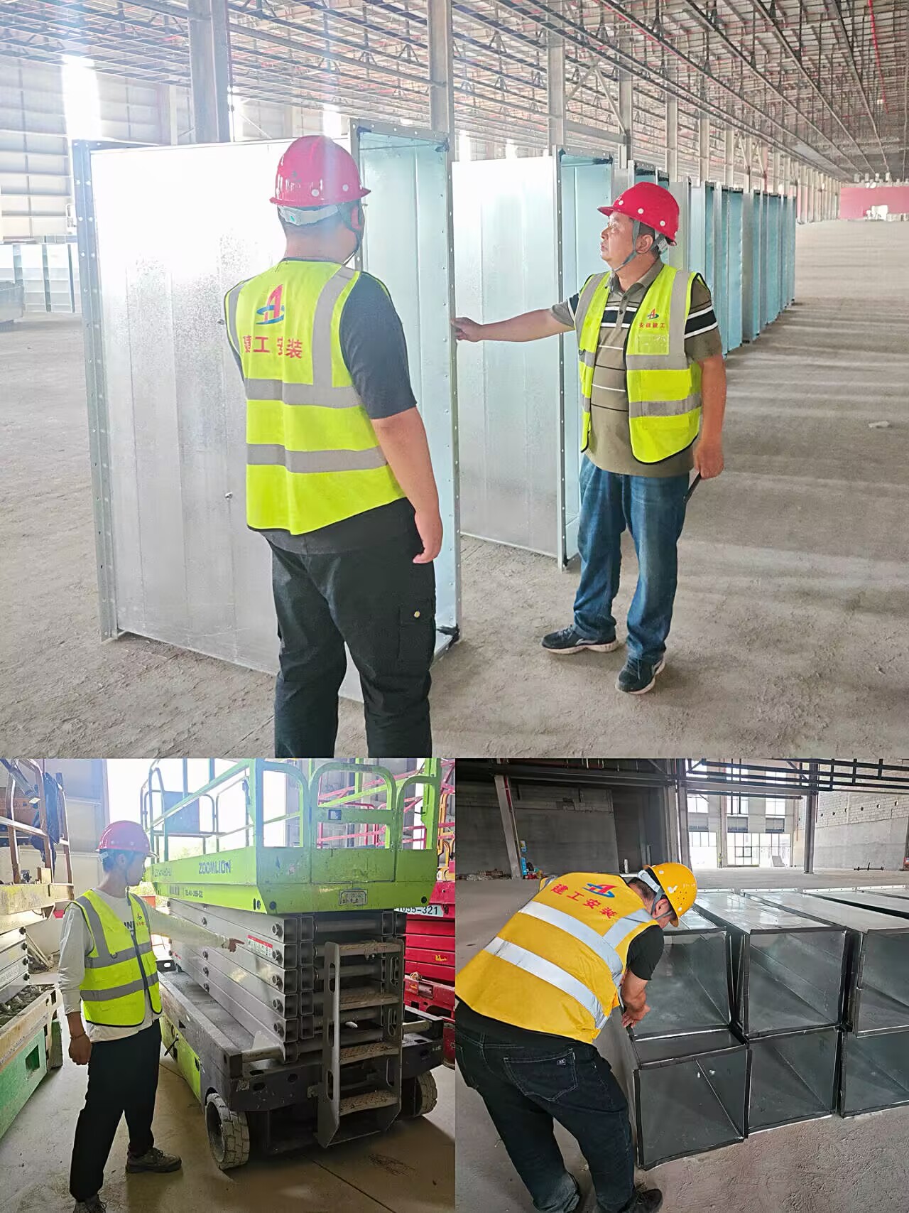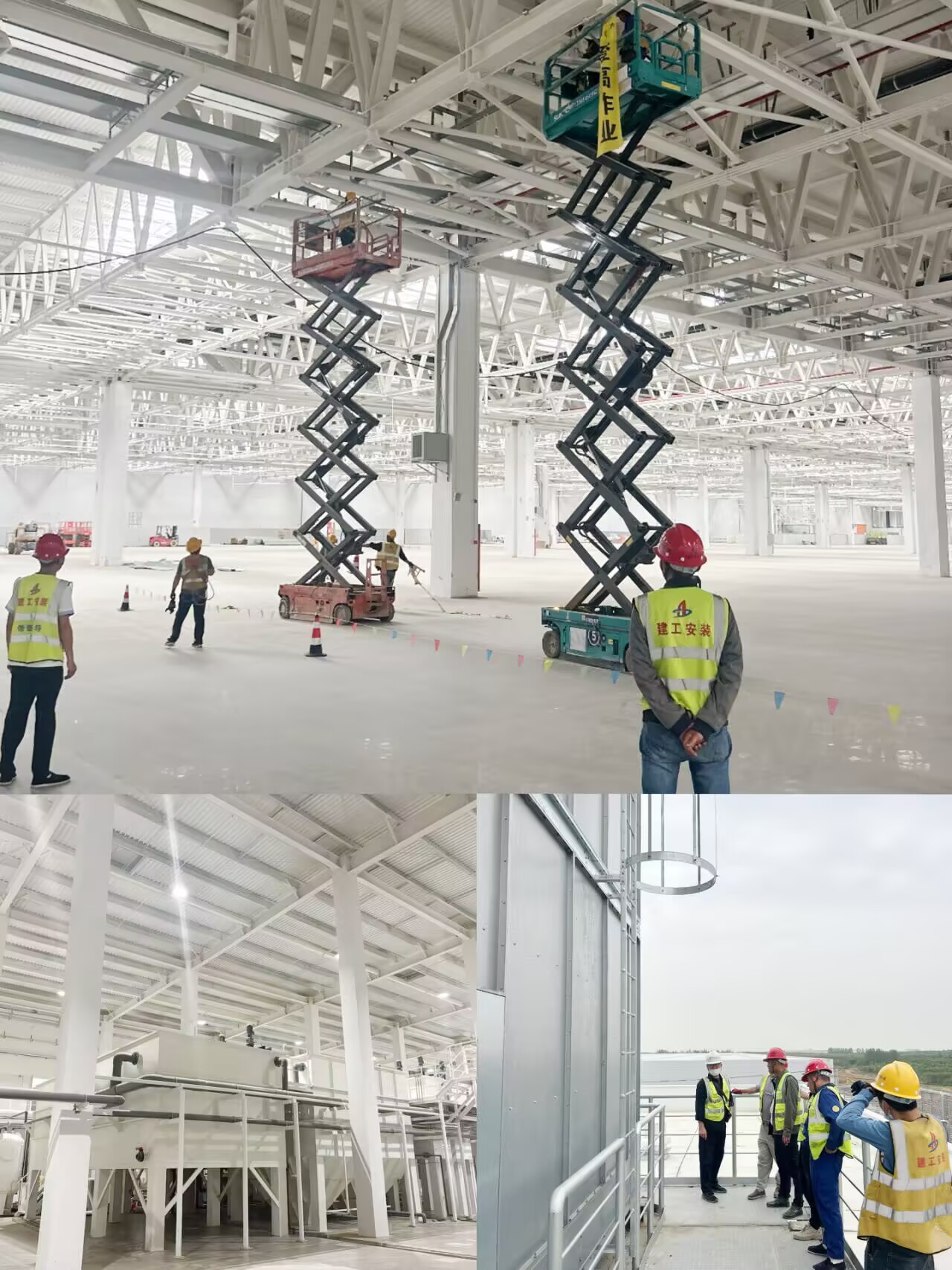 走進(jìn)項(xiàng)目施工現(xiàn)場(chǎng),銀灰色的鋼結(jié)構(gòu)廠房在陽(yáng)光下熠熠生輝,長(zhǎng)達(dá)百米的標(biāo)準(zhǔn)化車(chē)間整齊排列,工業(yè)美學(xué)與實(shí)用功能完美融合?,F(xiàn)場(chǎng)管理人員正在監(jiān)督支吊架整改安裝、冷卻塔設(shè)備避雷針安裝交底等,其中污水處理站安裝調(diào)試已完成,下一步全體人員將以高效率和高標(biāo)準(zhǔn)推動(dòng)項(xiàng)目順利通過(guò)竣工驗(yàn)收。