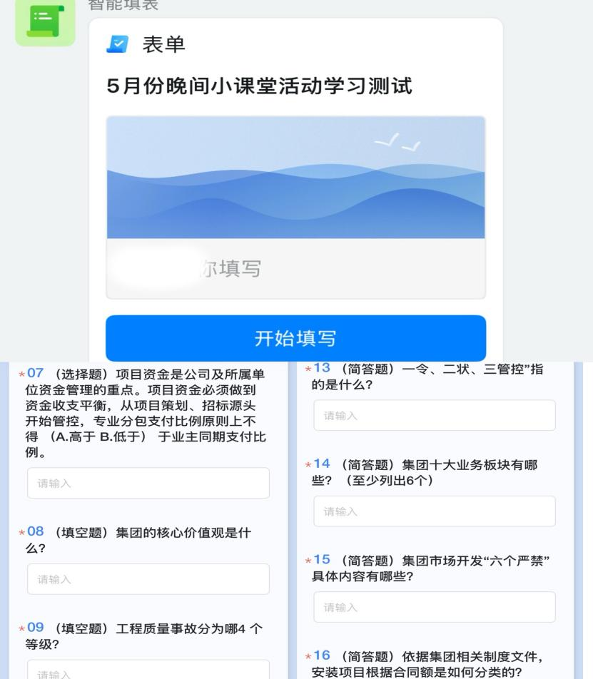 機(jī)關(guān)和各項(xiàng)目部學(xué)習(xí)現(xiàn)場(chǎng)、釘釘學(xué)習(xí)測(cè)試題填寫