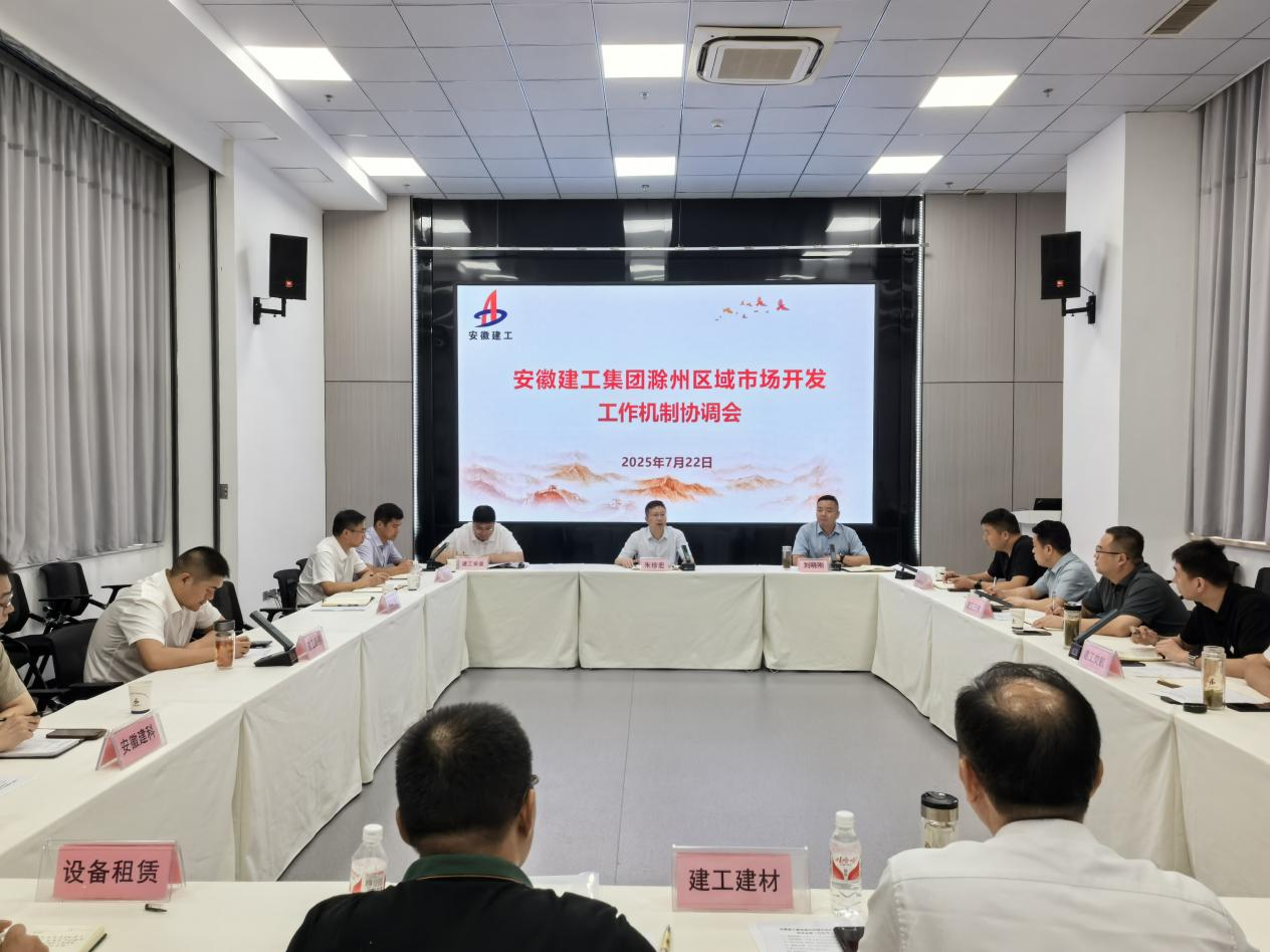 7月22日上午,安徽建工集團(tuán)滁州區(qū)域2025年7月份市場(chǎng)開發(fā)工作機(jī)制協(xié)調(diào)會(huì)在建工安裝第一會(huì)議室召開。建工安裝黨委書記、董事長(zhǎng)朱珍宏出席會(huì)議,會(huì)議由建工安裝市場(chǎng)開發(fā)和投資部許杰主持。